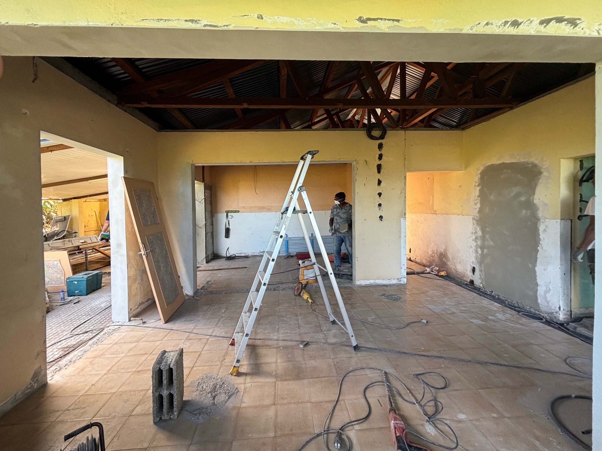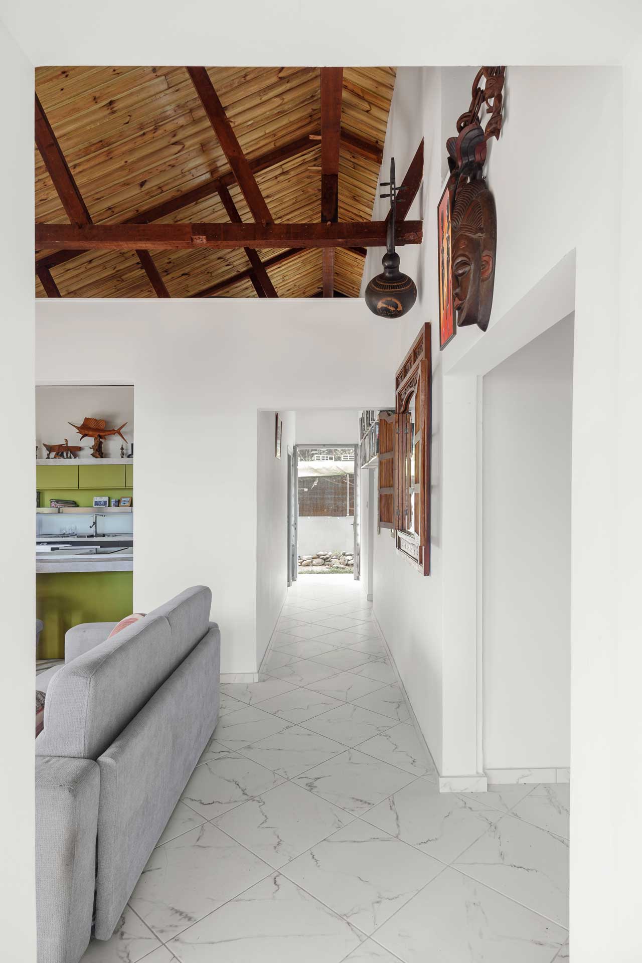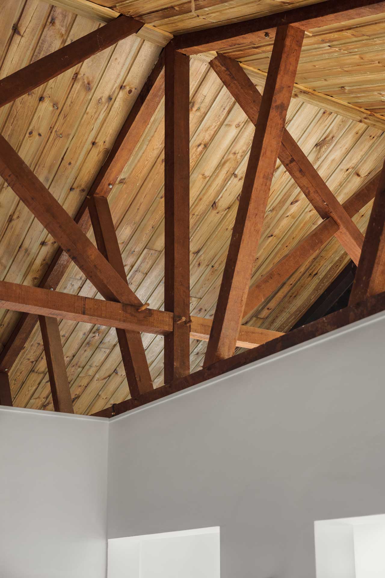une maison existante bien réalisée, une belle charpente de style péi en bois.