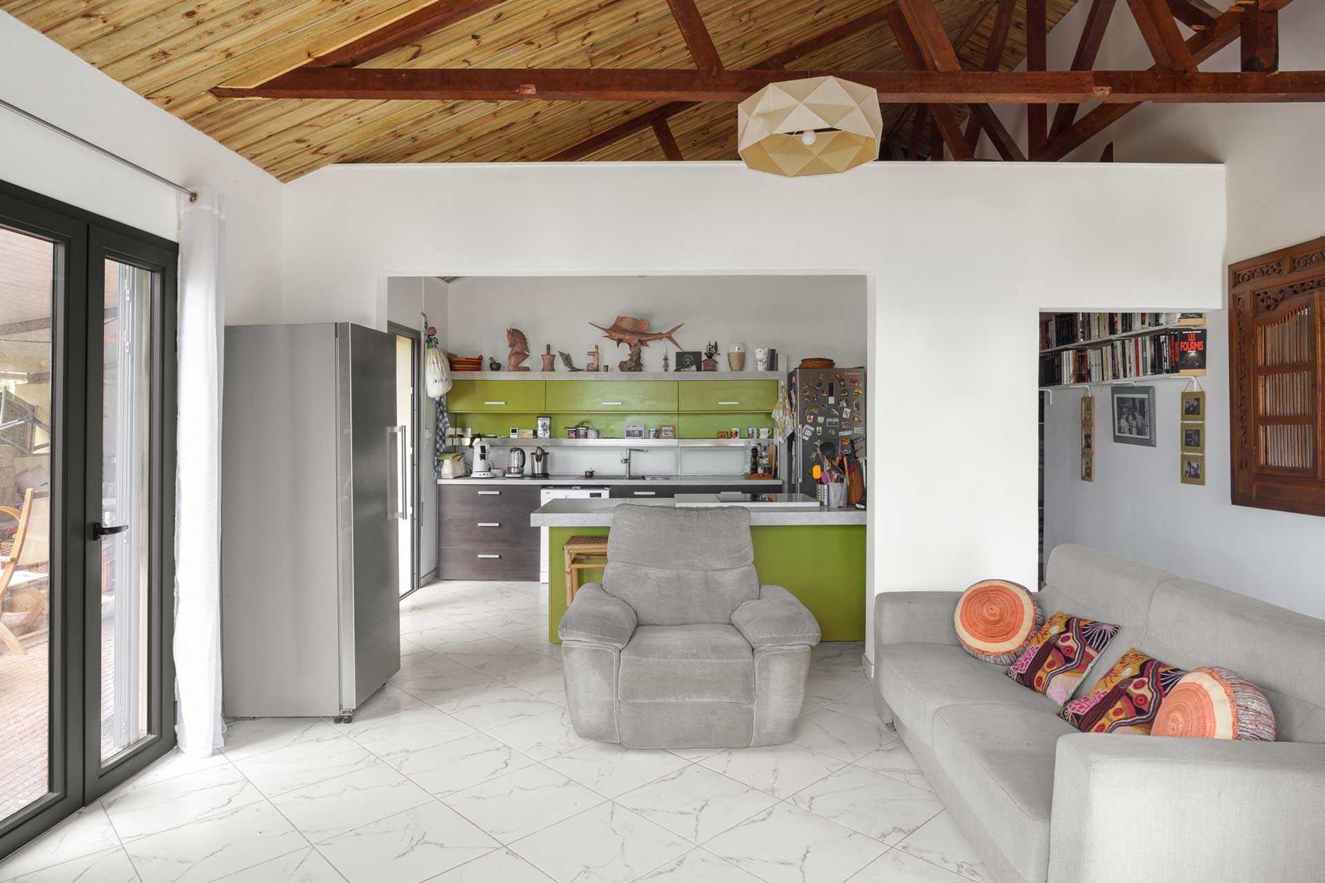 Le projet consiste à décloisonner les espaces de vie pour les faire communiquer et redonner du volume en exploitant la hauteur masquée par un ancien faux plafond.